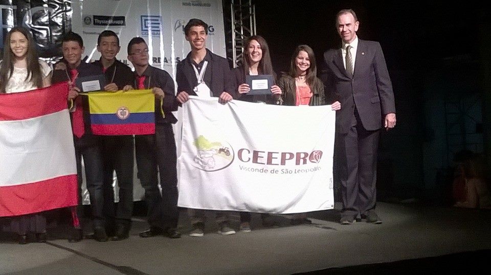 juntamente com a orientadora Ms Joana Cicconeto e o coorientador Renan Felipe Orlandini, participaram da 29º Mostra Brasileira de Ciência e Tecnologia - Mostra Internacional de Ciência e Tecnologia / MOSTRATEC 2014, em Novo Hamburgo, recebem premiação de 4* Lugar na área de Ciências Animais e de Plantas e ganham credenciamento para participar do Campamento Científico Argentina na cidade de Entre Rios na Argentina em setembro de 2015. Parabéns aos alunos e professores do Centro pela conquista.